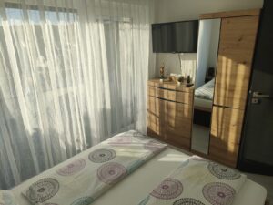 Az apartman légkondicionált, teljesen felszerelt konyhával, valamint két tágas erkéllyel rendelkezik, hogy minden igényt kielégítsen. A szabadstrand és a helyi látnivalók könnyű sétával elérhetőek, így garantálva a kellemes időtöltést és a környék felfedezését.
